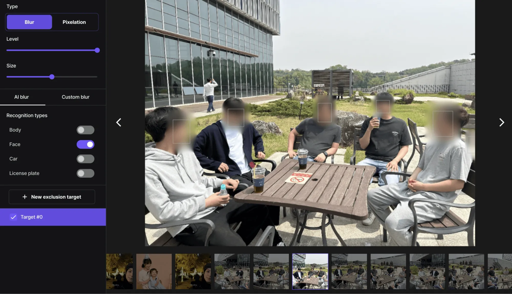 ファイル容量を削減した後、写真や動画に見知らぬ人の顔が含まれている場合、個人情報保護法を遵守するために必ずぼかし処理を行いましょう。ぼかし処理が必要な場合は、ブラー・ミーサービスを利用してみてください。ブラー・ミーは簡単かつ効果的に顔をぼかすことができるツールを提供しています。個人情報保護を怠ると、法的問題に発展する可能性があるため注意が必要です!