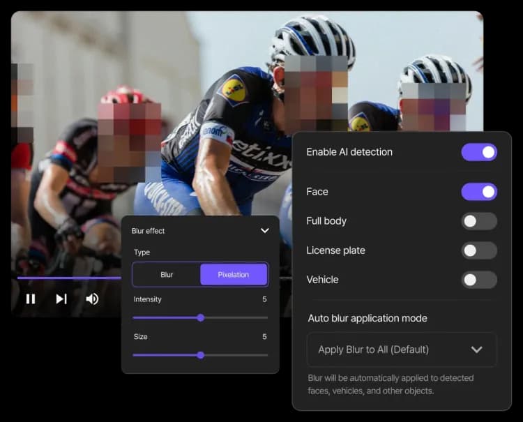 Our AI redaction software does the hard work for you. It automatically detects faces, license plates, and other sensitive PII in your videos and masks them with a blur or mosaic effect. No more scrubbing through footage frame by frame.
